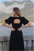 Expertly crafted with a blend of linen, this midi dress features puff sleeves for a modern touch. Lightweight and versatile, it's the perfect addition to your summer wardrobe. With a shirred back for a flexible and comfortable fit, this dress also features a gorgeous back cut out. Feel confident and comfortable in this stylish black dress, perfect for any occasion.