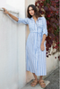 AMONG THE BRAVE CYPRUS BLUE STRIPE MIDI DRESS
