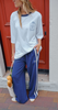 CERES LIFE GIGI WIDE LEG TERRY PANTS WASHED NAVY/WHITE