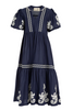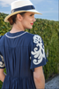 Strong embroidery and a lightweight cotton harmoniously combine in the ‘After You My Tier’ dress. Designed intelligently with everyday in mind, this dress is crafted in the ‘Navy in Love’ cotton with a bold, contrasting embroidery. A full, tiered skirt, gathered sleeves and a notched neckline make this pull-on dress a desk-to-dinner savior.