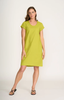 This FOIL linen dress in a striking chartreuse shade features capped sleeves with pockets and elegant fringe trim along the neckline and sleeves, adding unique flair to your summer time look.