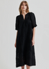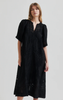 Second Female burnout dress. The dress is made in a light viscose blend with semi-sheer burnout effect. Featuring a detachable and adjustable underslip. V-neckline and short, puffed sleeves. Loose fit with A-line shape.