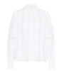 KAbella Shirt in optical white with a straight fit, crisp texture, and classic collar. Features vertical pin-tuck detailing and openwork inserts on body and sleeves. Button front closure and long sleeves with elasticated cuffs.