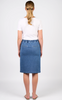 An easy pull-on denim skirt made from comfortable stretch denim with a flat front and elasticated back waist. Designed in blue denim with contrast white stitching, it’s a classic, casual style for everyday wear.