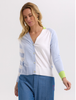 Crafted from a lightweight, breathable cotton-silk blend, it’s ultra-soft on the skin and perfect for layering year-round. The V-neckline and button-up front provide structure, while the semi-fitted silhouette flatters without clinging.