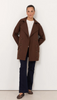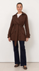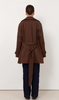 The Paris Short Trench in Chocolate is crafted from a lightweight lyocell–cotton blend with a soft, relaxed feel. Designed with a lapel collar, tortoise button closure through the center front and side pockets, it features an adjustable waist tie to cinch the silhouette.