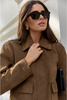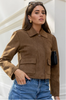 Crafted from soft faux suede with a structured silhouette, this cropped jacket brings a refined utility edge to cool-weather layering. It features a classic collar, button front and flap pockets, all in a warm cinnamon tone that pairs seamlessly with denim or tailoring. Fully lined for comfort and ease.